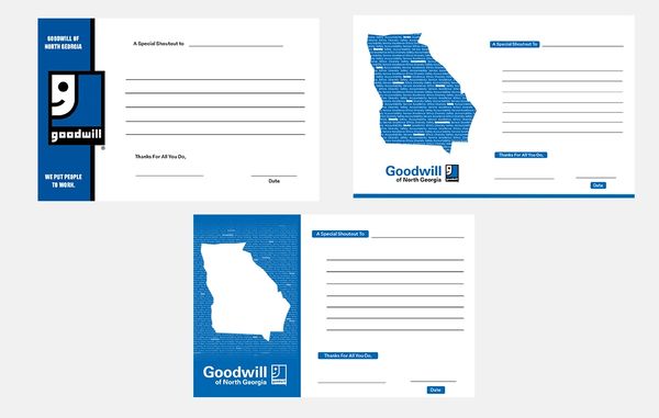 I designed recognition cards to a new and fresh format for Goodwill of North Georgia. These were designed in photoshop and went through a revision process to get approval.